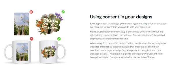 Dozwolona i zakazana praktyka w projektowaniu nadruków w Canvie. Źródło: Canva